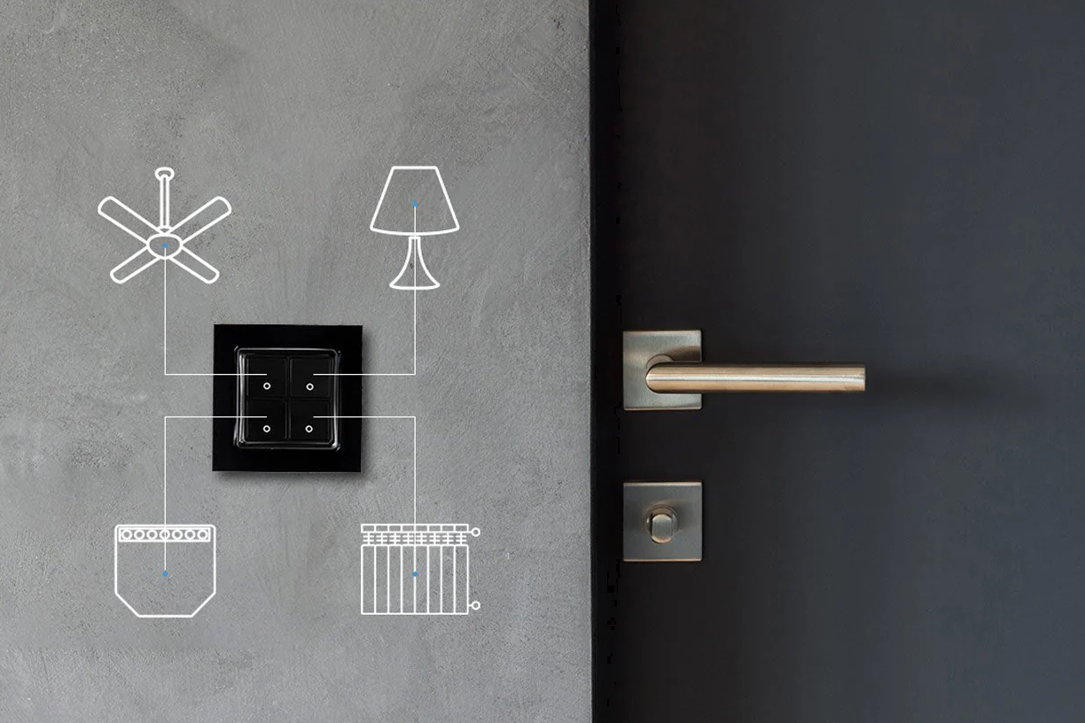 Shelly i4 Gen3 to idealny towarzysz dla Shelly Wall Switch for Smart Relays, wyposażony w 4-przyciskową konstrukcję. Każdy przycisk może wywołać do 4 różnych akcji, umożliwiając jednemu przełącznikowi aktywację i wykonanie do 16 scen.