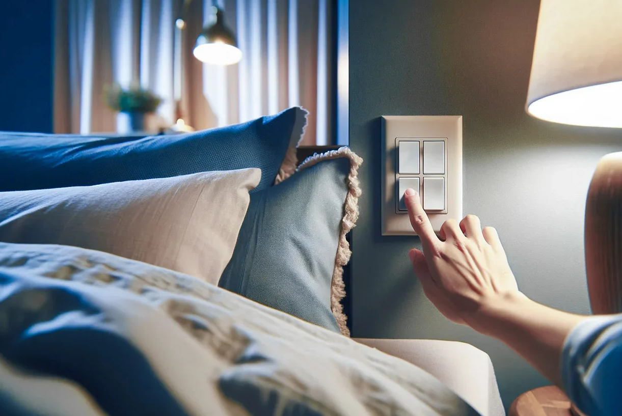 Zapomniałeś wyłączyć światła przed pójściem spać? Nie musisz się martwić! Dzięki Shelly i4 Gen3 możesz aktywować scenę „Pora snu” jednym dotknięciem. Wyłącz wszystkie światła, zamknij rolety i aktywuj system bezpieczeństwa – wszystko to bez wychodzenia z wygodnego łóżka.